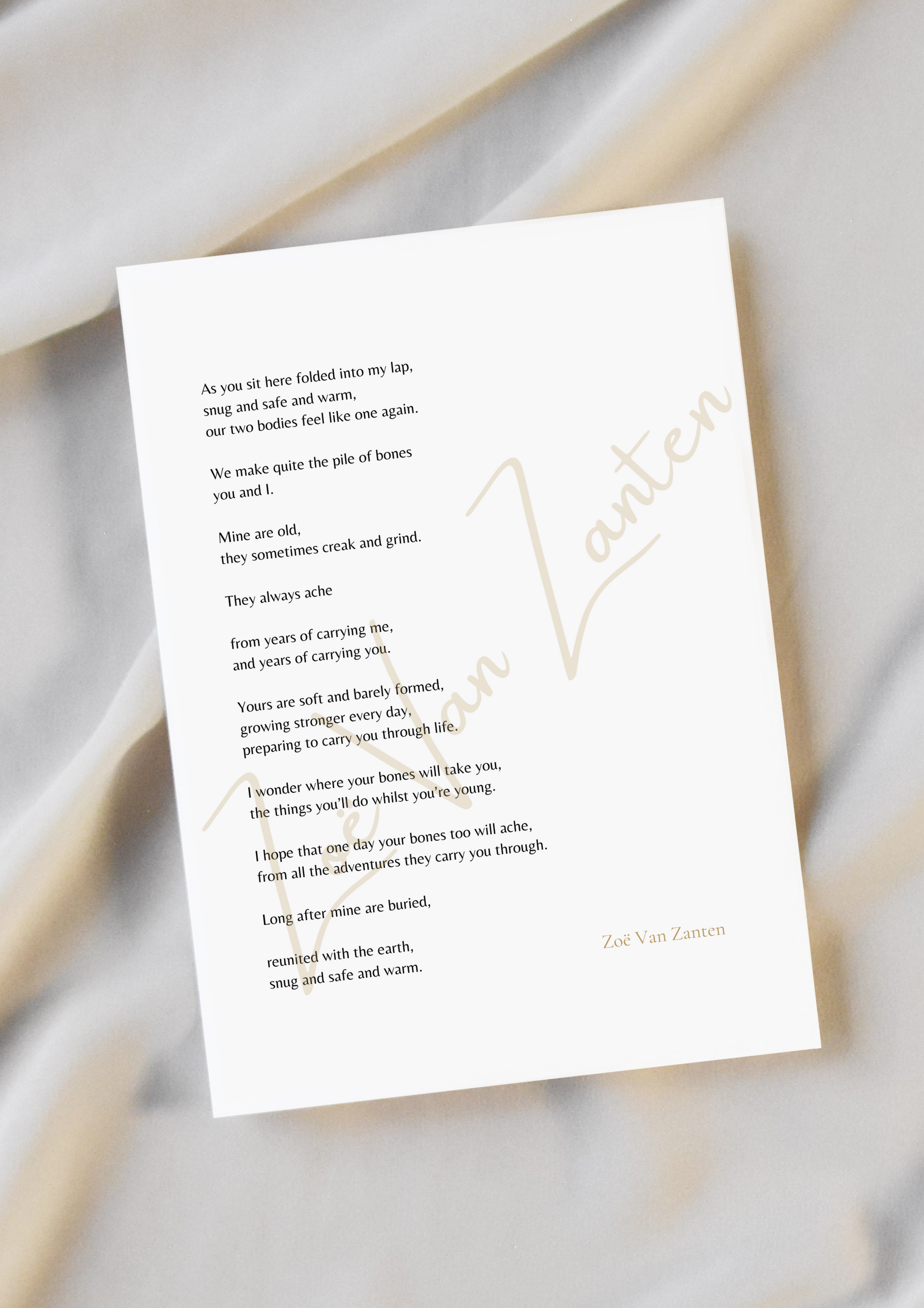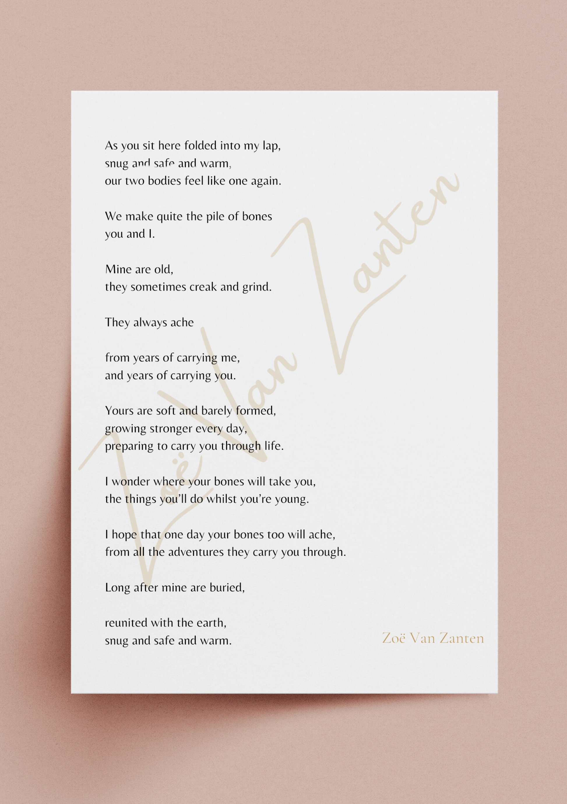 "Bones" poem digital download featuring high resolution files which can be printed in different sizes making it suitable for framing, gifting, printing your own cards and sharing with loved ones.